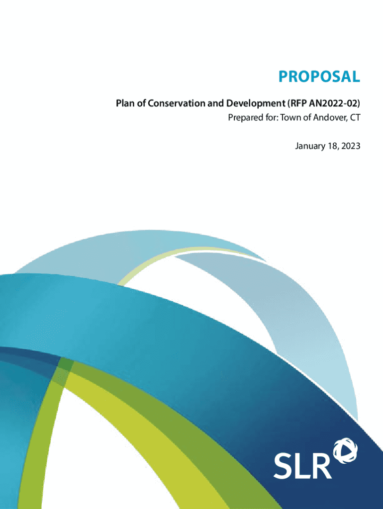 PROPOSAL Plan of Conservation and Development (RFP AN202202) Prepared for: Town of Andover, CT January 18, 2023January 18, 2023 Mr. Jed Larson, Chair Planning and Zoning Commission Andover Town Hall