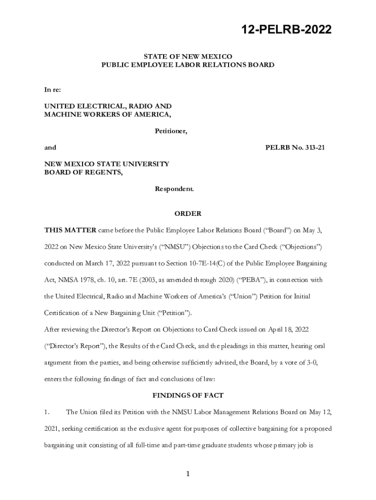 12PELRB2022 STATE OF NEW MEXICO PUBLIC EMPLOYEE LABOR RELATIONS BOARD In re: UNITED ELECTRICAL, RADIO AND MACHINE WORKERS OF AMERICA, Petitioner, adverb No. 31321NEW MEXICO STATE UNIVERSITY BOARD