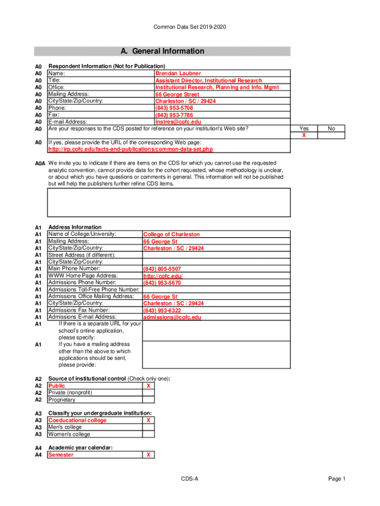 Common Data Set 20192020A. General Information A0 A0 A0 A0 A0 A0 A0 A0 A0 A0Respondent Information (Not for Publication) Name: Brendan Abner Title: Assistant Director, Institutional Research Office: