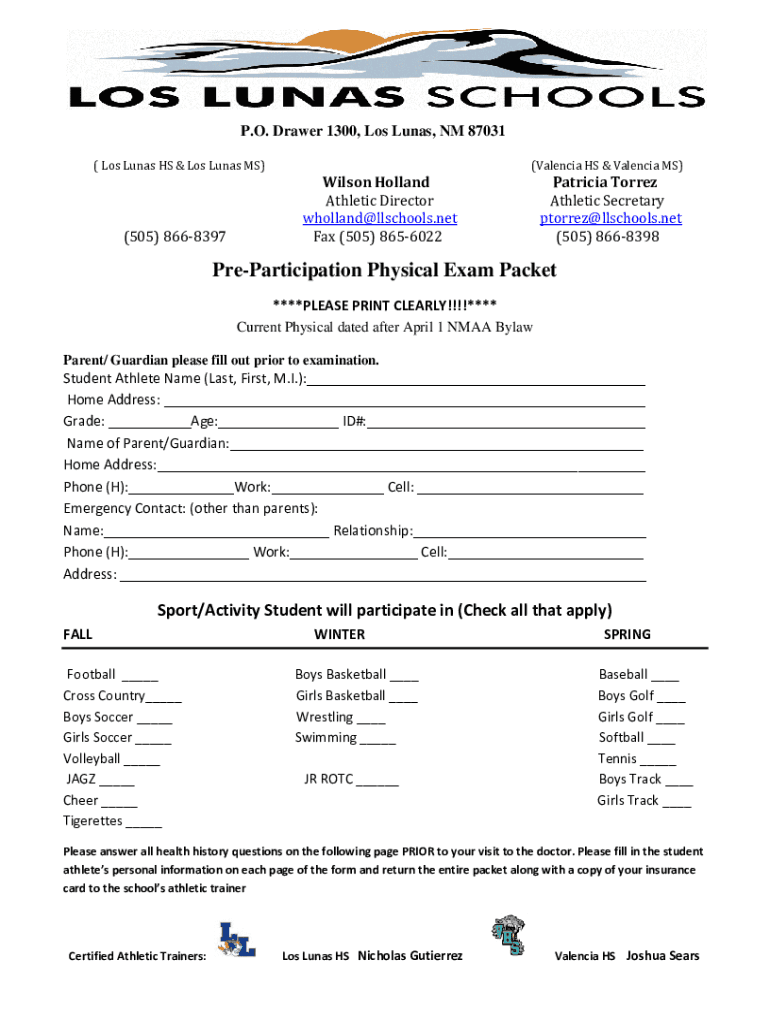 P.O. Drawer 1300, Los Luna's, NM 87031 (Los Luna's HS & Los Luna's MS)(505) 8668397Wilson Holland Athletic Director wholland@llschools.net Fax (505) 8656022(Valencia HS & Valencia MS)Patricia Torres