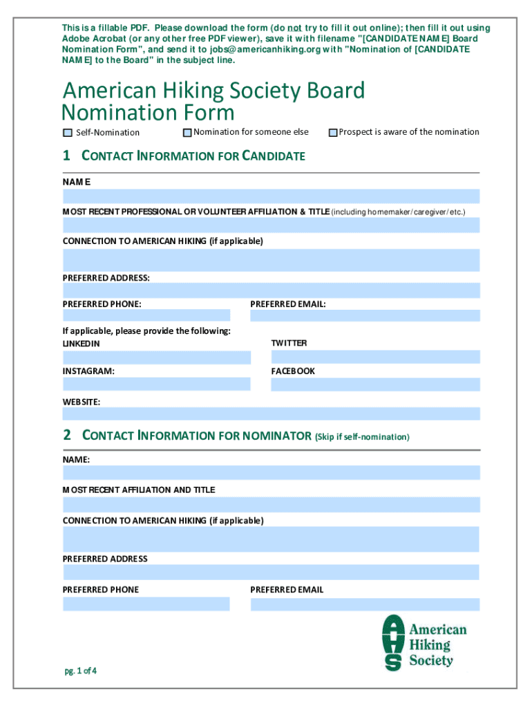 Nomination Form American Hiking is not the form you're looking for?Search for another form here.