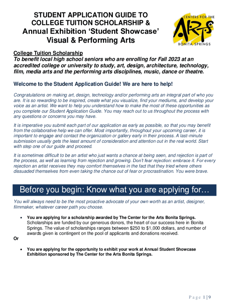 STUDENT APPLICATION GUIDE TO COLLEGE TUITION SCHOLARSHIP annual Exhibition Student Showcase Visual & Performing Arts College Tuition Scholarship To benefit local high school seniors who are enrolling