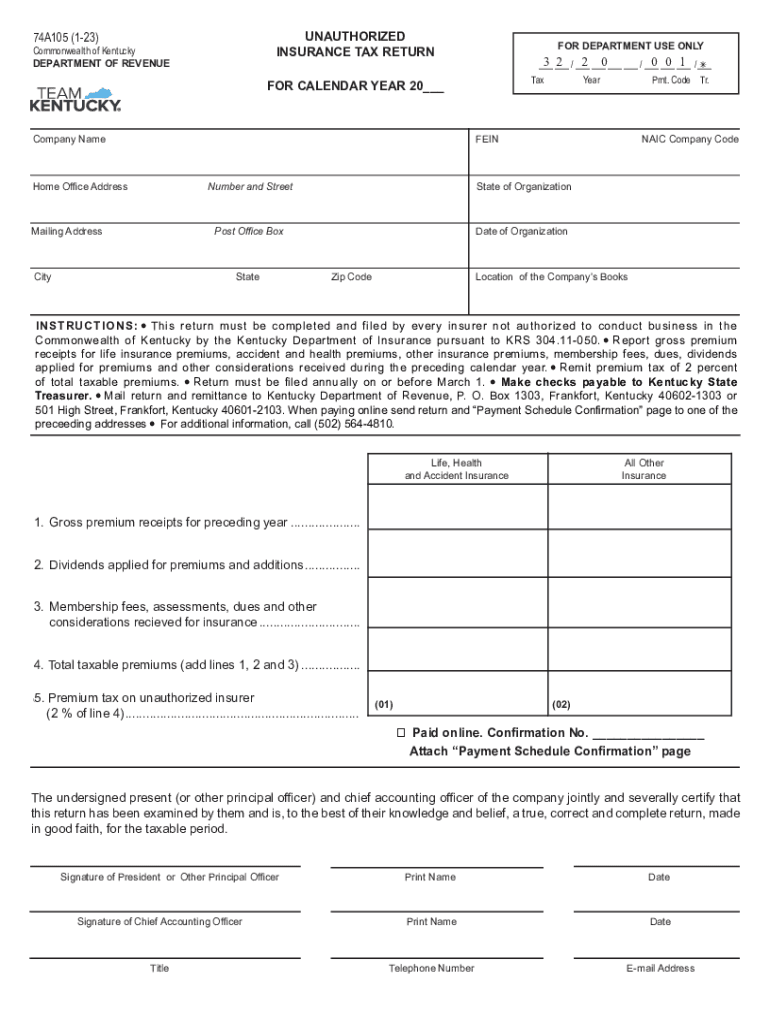 INSURANCE TAX RETURN74A105 (123)Commonwealth of Kentucky