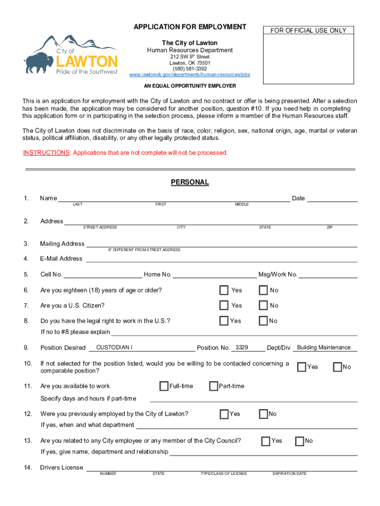 Instructions for reapplication FOR EMPLOYMENT A City of Lawton Application for Employment is required for every position. Applications are only accepted for positions that are currently open. At this