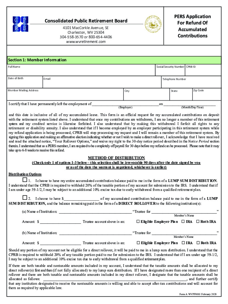 WV Public Employees Retirement SystemIMPORTANT NOTICE Attached is an Application for Refund of Accumulated Contributions. NOTE: If you withdraw your contributions, you will forfeit all retirement