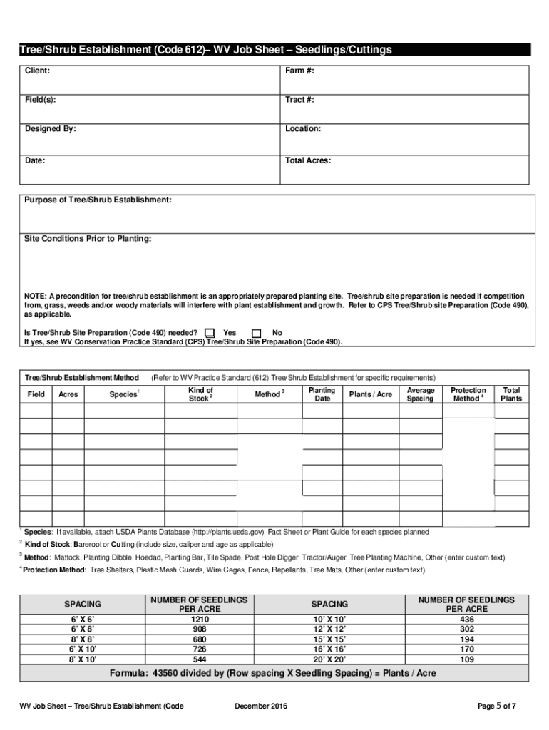 Tree/Shrub Establishment Seedlings/Cuttings WV Conservation Practice Job Sheetlike 612Definition Establishing woody plants by planting seedlings or cuttings, by direct seeding, and/or through natural