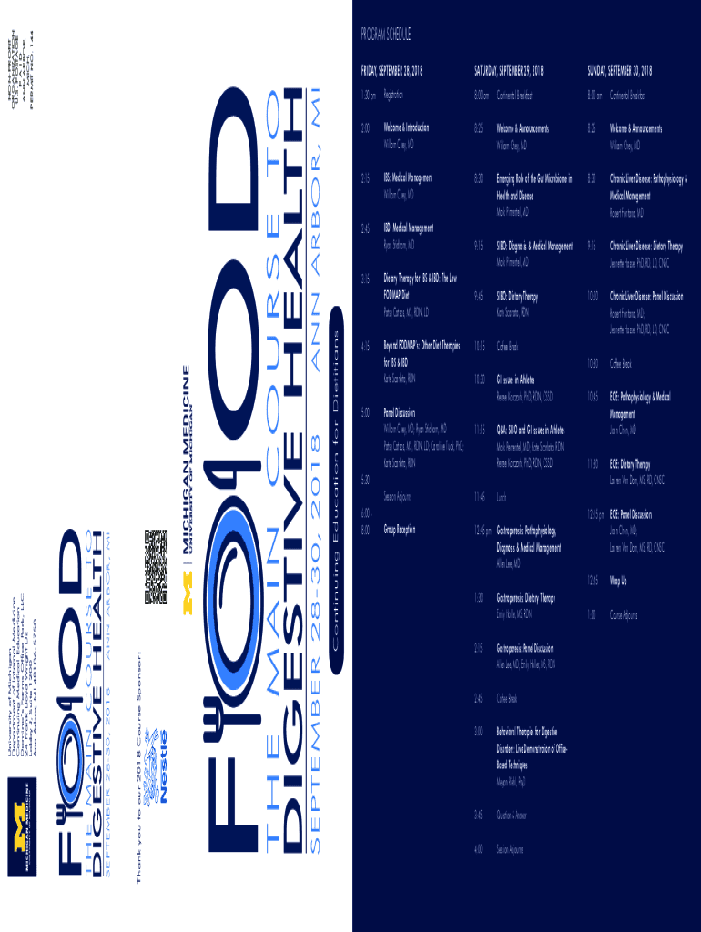 SATURDAY, SEPTEMBER 29, 2018SUNDAY, SEPTEMBER 30, 20181:30 pmRegistration8:00 am Continental Breakfast8:00 am Continental Breakfast2:00Welcome & Introduction William They, MD8:25Welcome & Announcements