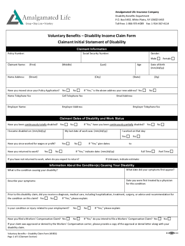 Get the free Disability Income Claim Form Claimant Initial Statement of ...