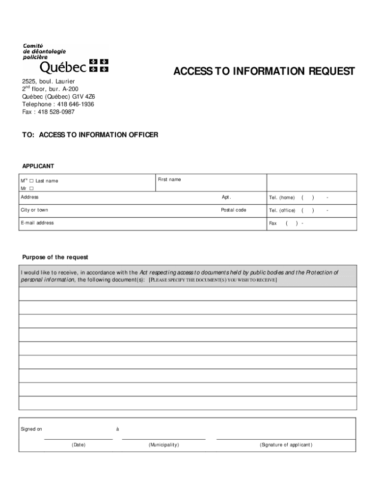 Access To Information Request is not the form you're looking for?Search for another form here.