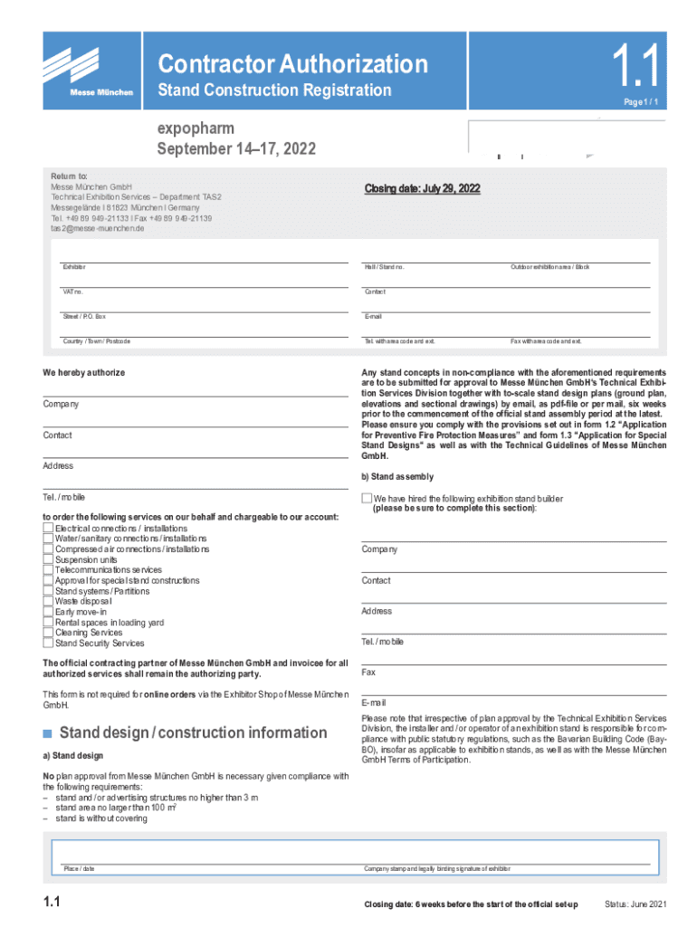 Stand Construction Registration Page 1 / 1expopharm
