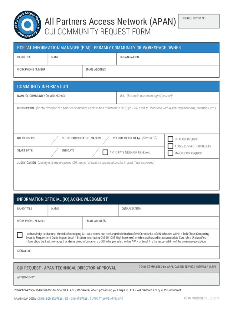 All Partners Access Network (JAPAN)CUT REQUEST ID NO.CUT COMMUNITY REQUEST CORPORAL INFORMATION MANAGER (PIM) PRIMARY COMMUNITY OR WORKSPACE OWNER