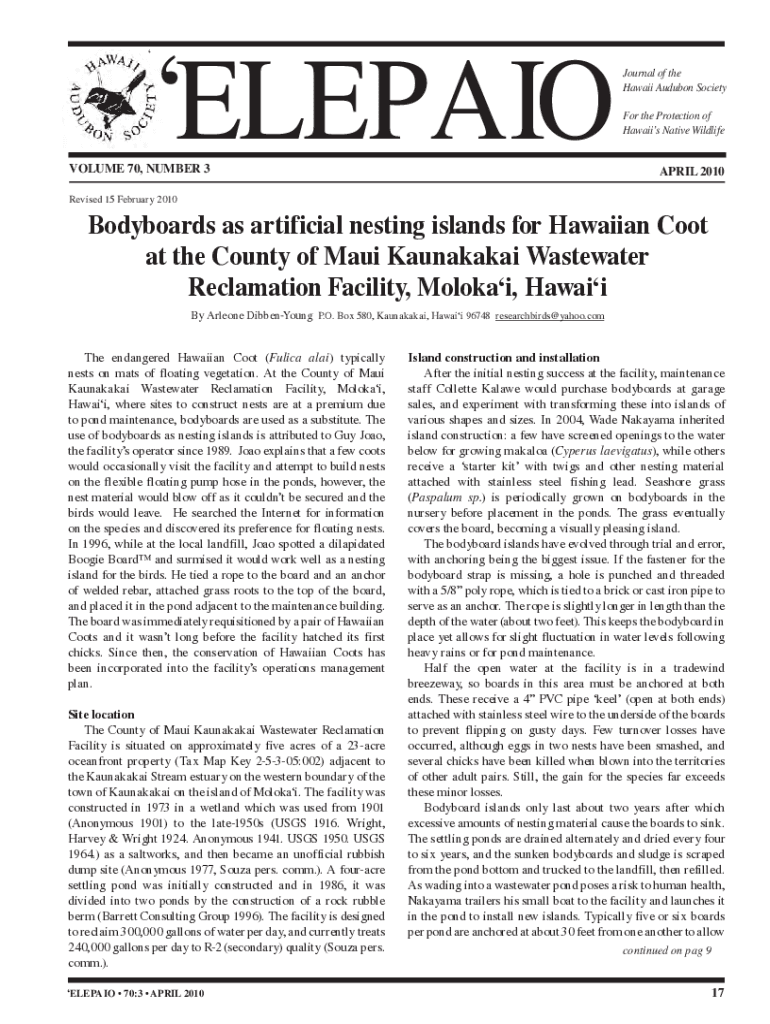 Hawaii's Native WildlifeAPRIL 2010Revised 15 February 2010Bodyboards as artificial nesting islands for Hawaiian