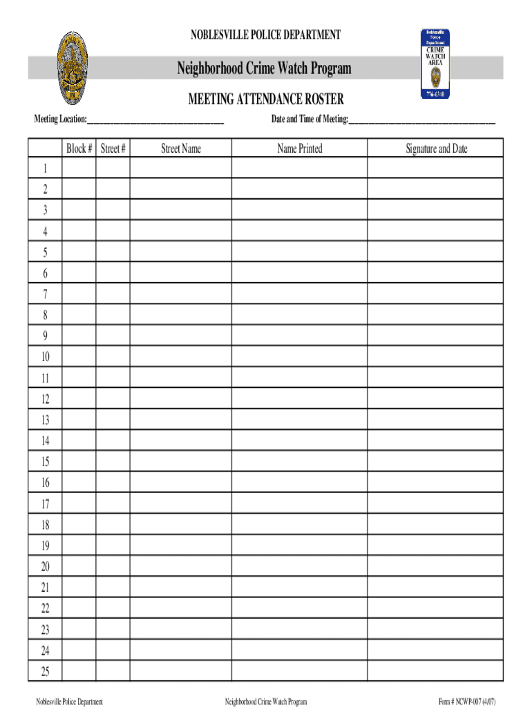 NOBLESVILLE POLICE DEPARTMENTNeighborhood Crime Watch Program