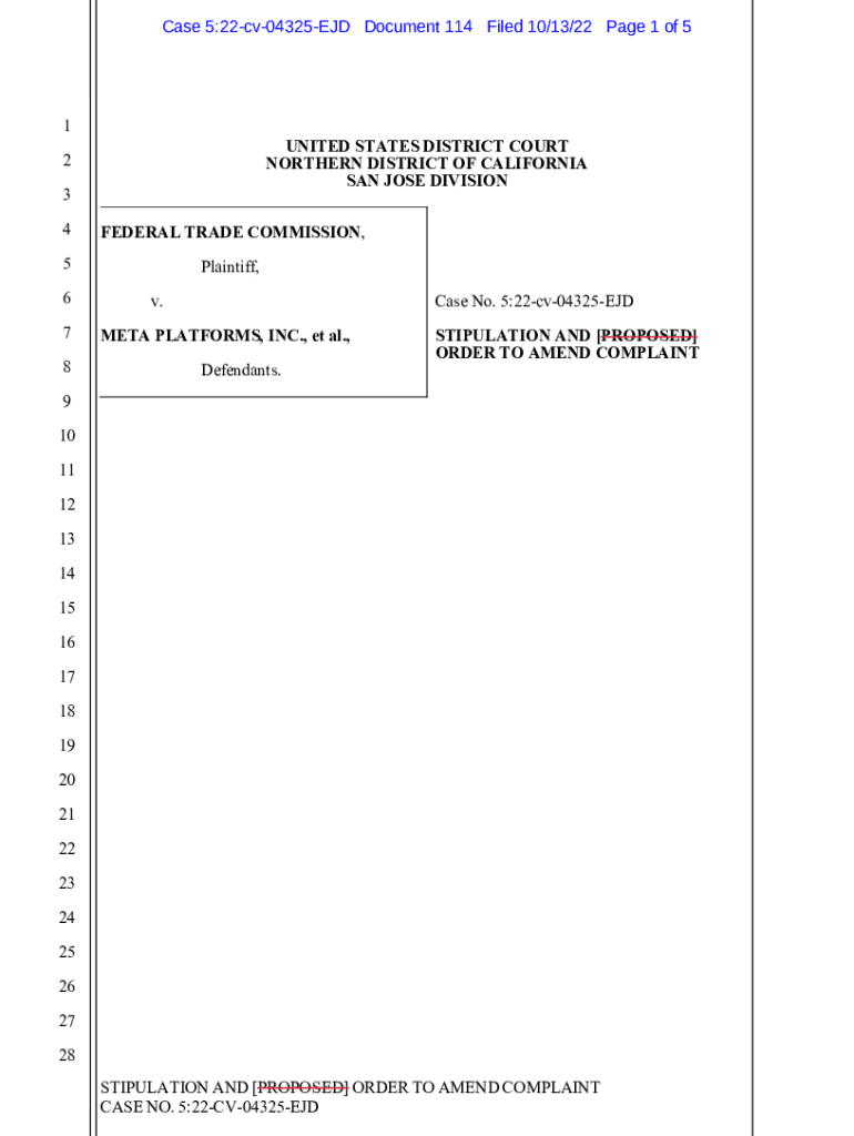Get the free STIPULATION AND PROPOSED ORDER TO AMEND ...