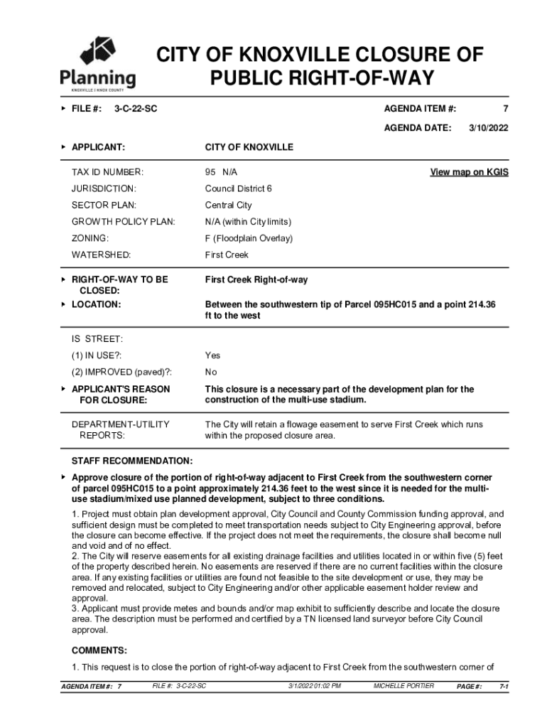 3/10/2022APPLICANT:CITY OF KNOXVILLE ID NUMBER:95 N/JURISDICTION:Council District 6SECTOR PLAN:Central Outgrowth