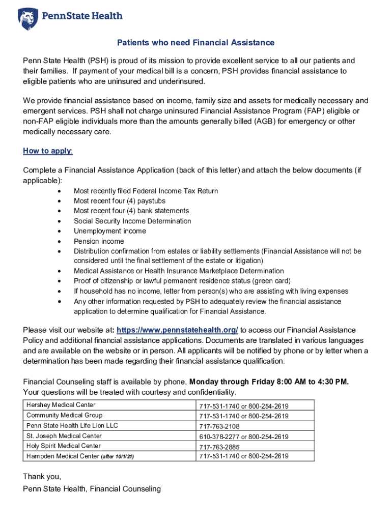 Get the free Financial Assistance ApplicationPenn State Health