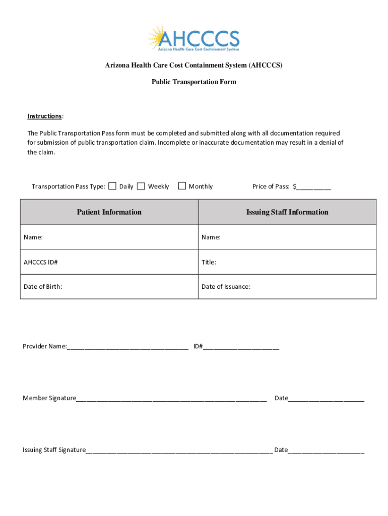 Public Transportation FormInstructions: