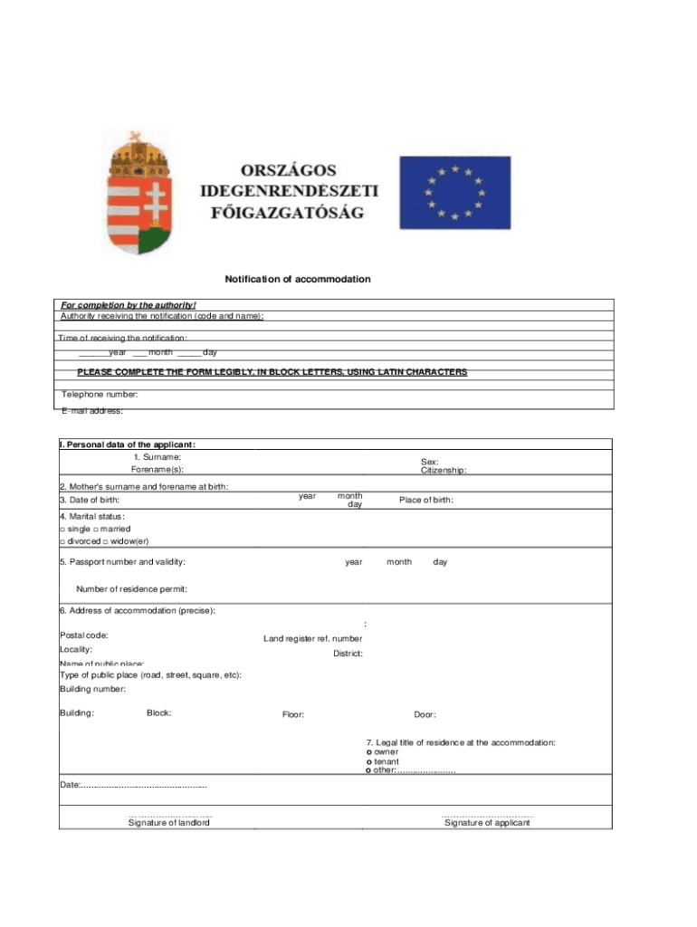 Get the free Notification of accommodation