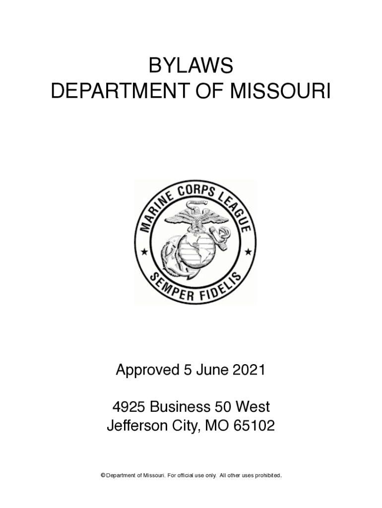 BYLAWS DEPARTMENT OF MISSOURIApproved 5 June 2021 4925 Business 50 West Jefferson City, MO 65102 Department of Missouri. For official use only. All other uses prohibited.2021 DEPARTMENT BYLAWS Table