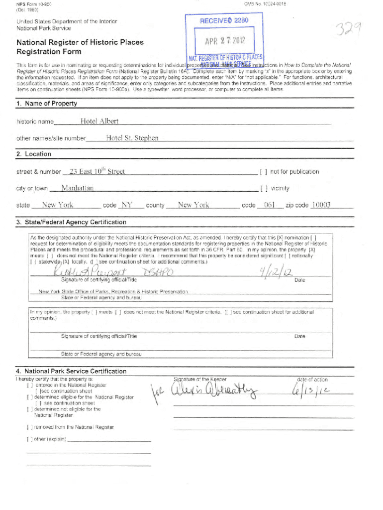 OMS No. 100240018NPS Form 10900 (Oct. 1990)RECEIVE0 2280United State s HEPA RTM ENT of the Inter or National Park Service APR 27 2012National Register of Historic Places Registration Format. REGISTER