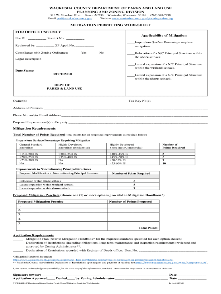 WAUKESHA COUNTY DEPARTMENT OF PARKS AND LAND USE PLANNING AND ZONING DIVISION 515 W. Moreland Blvd. Room AC230 Waukesha, Wisconsin 53188 (262) 5487790 Email pod@waukeshacounty.gov Website www.waukeshacounty.gov/planningandzoningMITIGATION