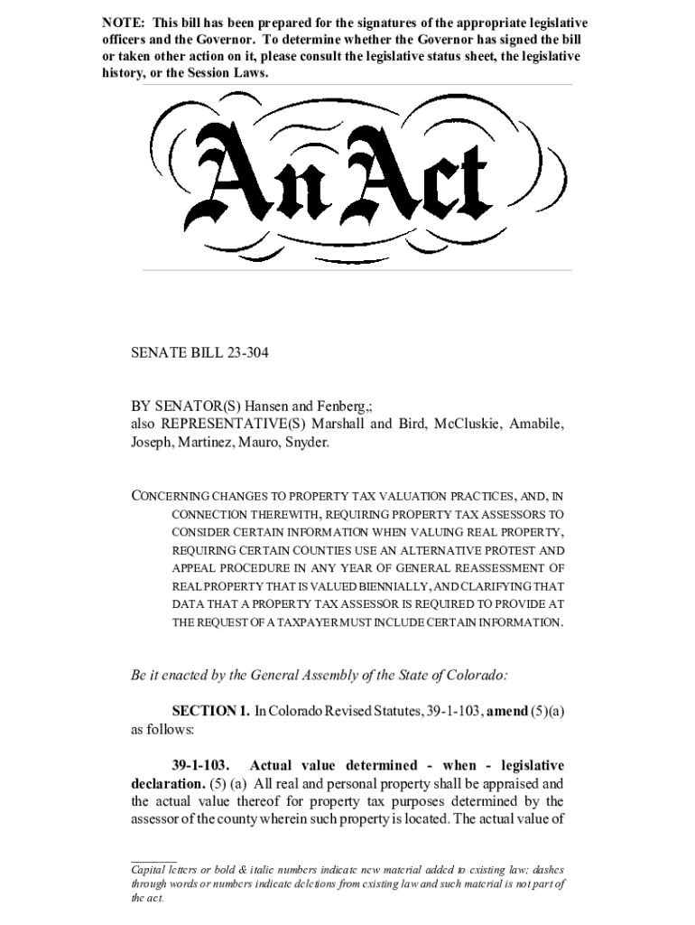 Obtain a copy of Senate Bill 23-304 form from the appropriate office or website.