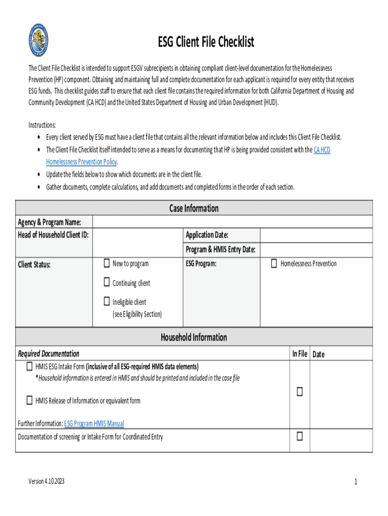 Get the free esg client file checklist hp. fillable form