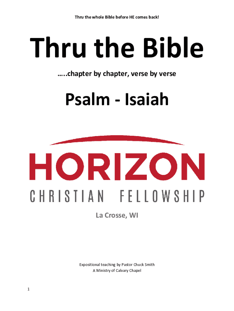 Through the whole Bible before HE comes back! Through the Bible. Chapter by chapter, verse by versePsalm Isaiah La Cross, Prepositional teaching by Pastor Chuck Smith