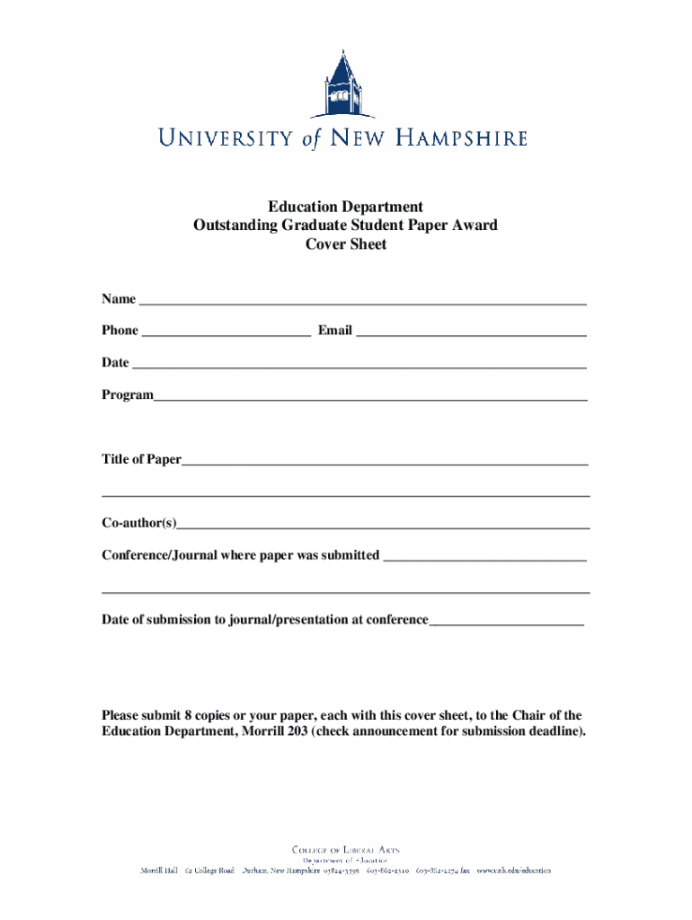 Education Department Outstanding Graduate Student Paper Award Cover Sheena ___ Phone ___ Email ___ Date ___ Program___Title of Paper___ ___ Coauthor(s)___ Conference/Journal where paper was submitted