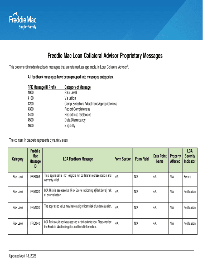 Freddie Mac Loan Collateral Advisor Proprietary Messages