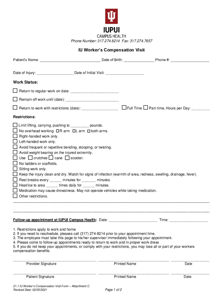 Phone Number: 317.274.8214 Fax: 317.274.7657IU Workers Compensation Visit
