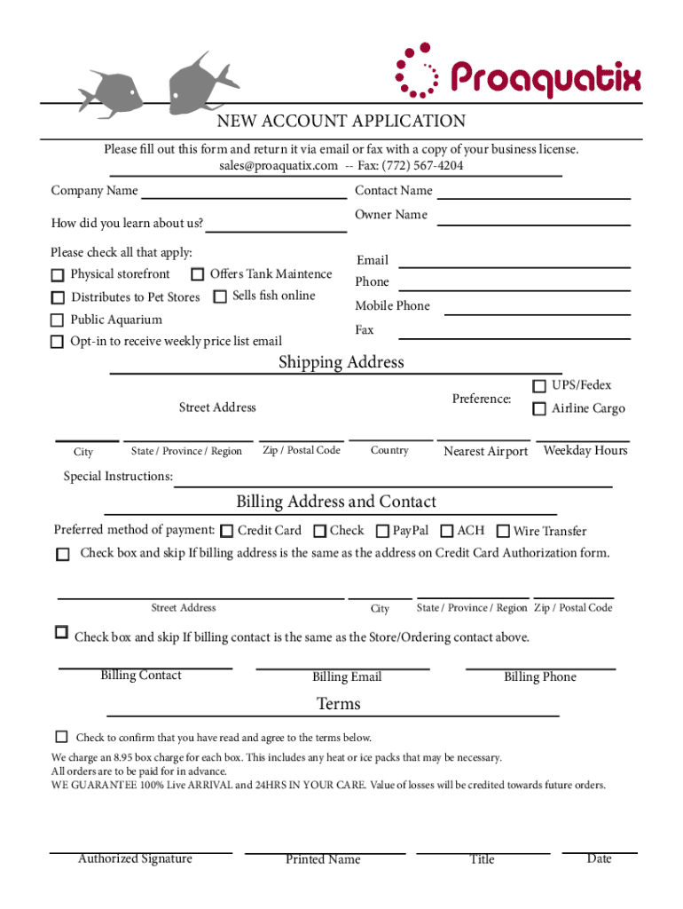 Get the free NEW ACCOUNT APPLICATION Shipping Address Billing ...