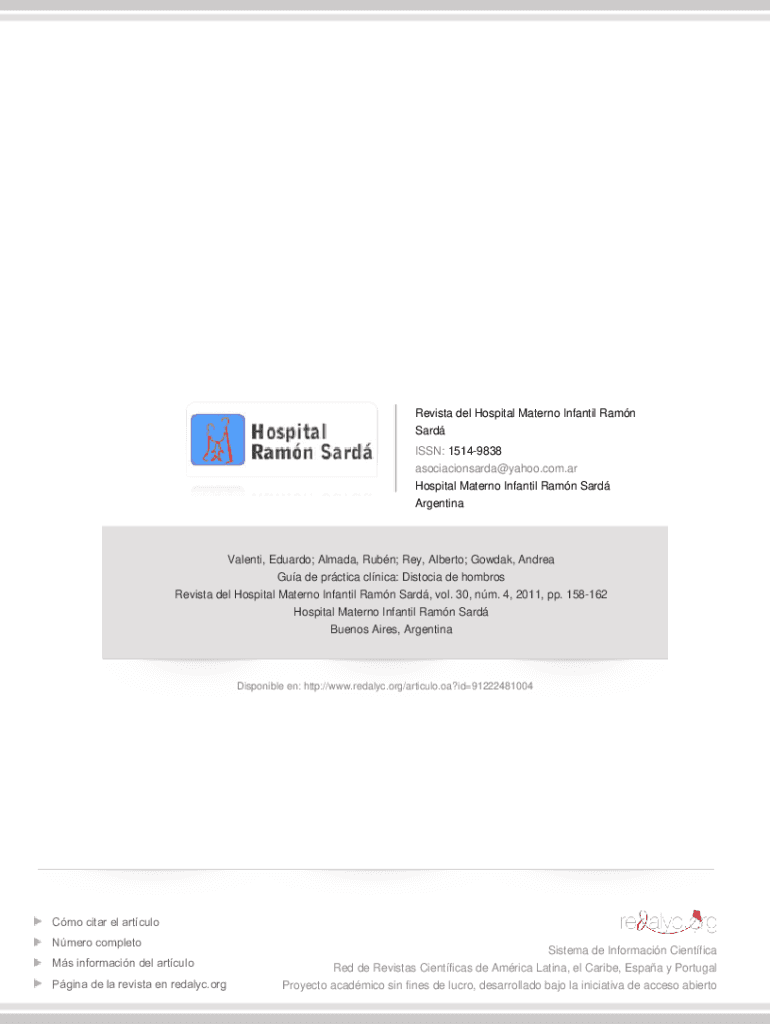 Re vista Del Hospital Mater no Infantile Ran Said ISSN: 15149838 asociacionsarda@yahoo.com.ar Hospital Mater no Infantile Ran Said Argentina Valenti, Eduardo; Almeida, Run; Rey, Alberto; Kodak, Andrea