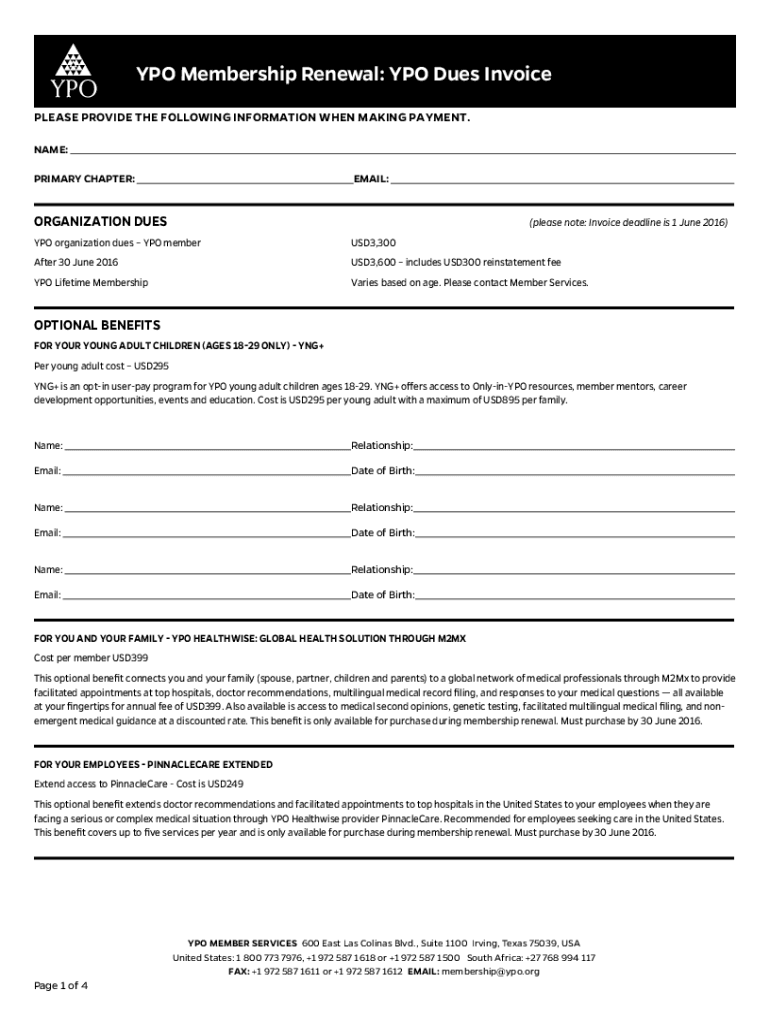 Get the free YPO Membership Renewal: YPO Dues Invoice