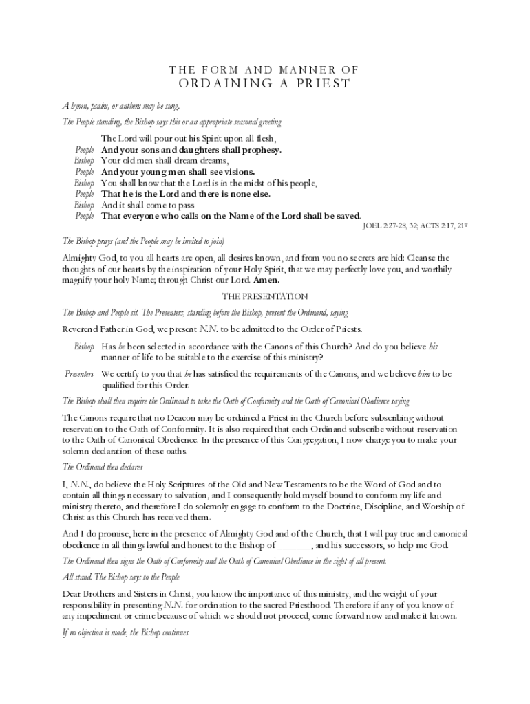 Get the free The Ordination of a Priest - Wikisource