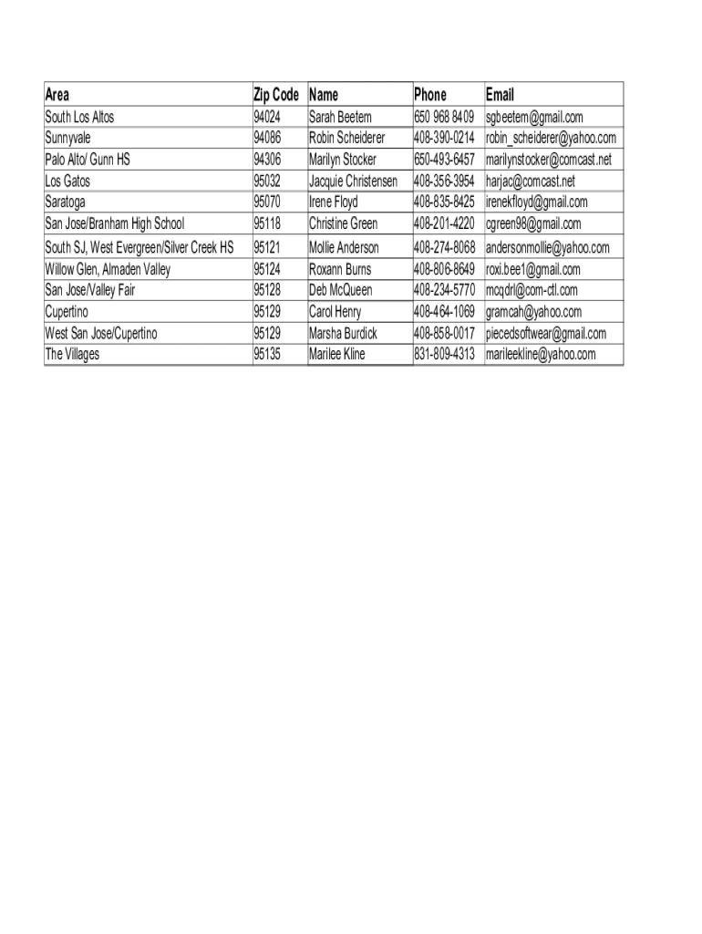 Area Code NamePhoneEmailSouth Los Altos