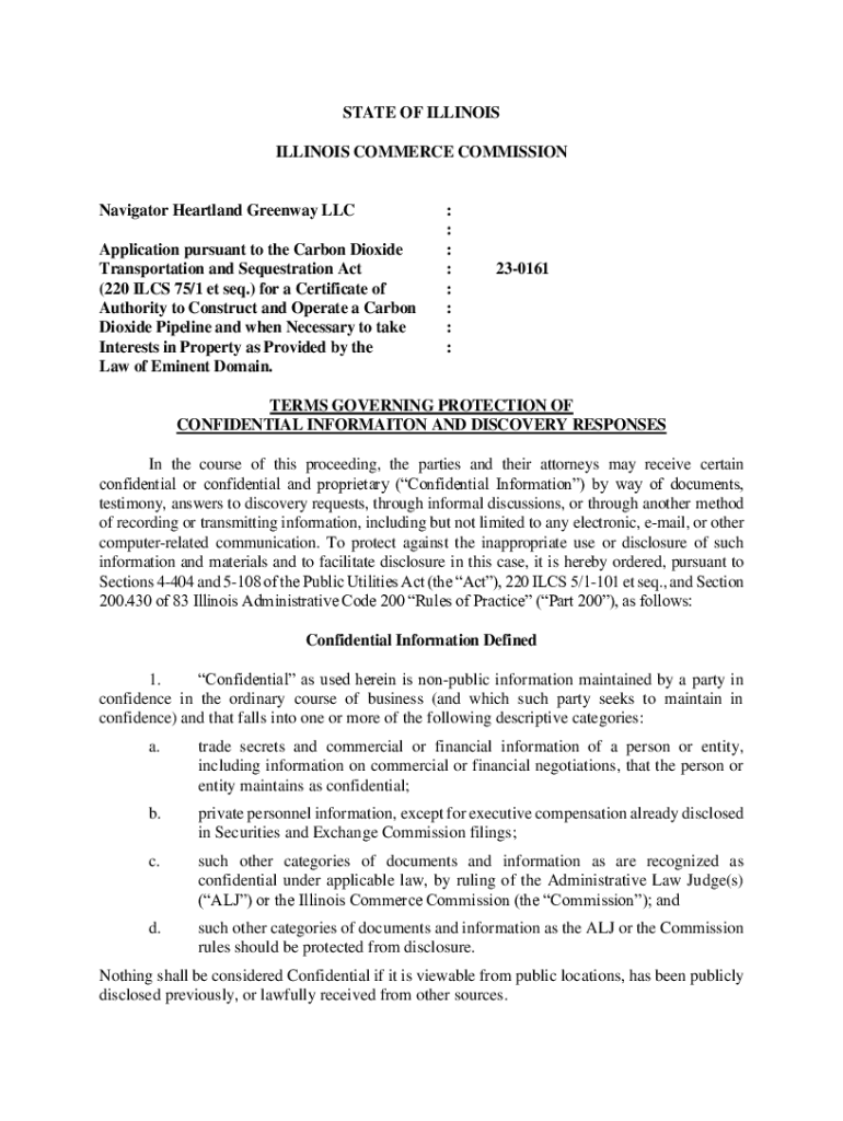 STATE OF ILLINOIS COMMERCE COMMISSIONNavigator Heartland Greenway LLC Application pursuant to the Carbon Dioxide Transportation and Sequestration Act (220 ILLS 75/1 et seq.) for a Certificate of Authority