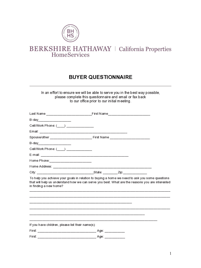BUYER QUESTIONNAIRE In an effort to ensure we will be able to serve you in the best way possible, please complete this questionnaire and email or fax back to our office prior to our initial meeting.