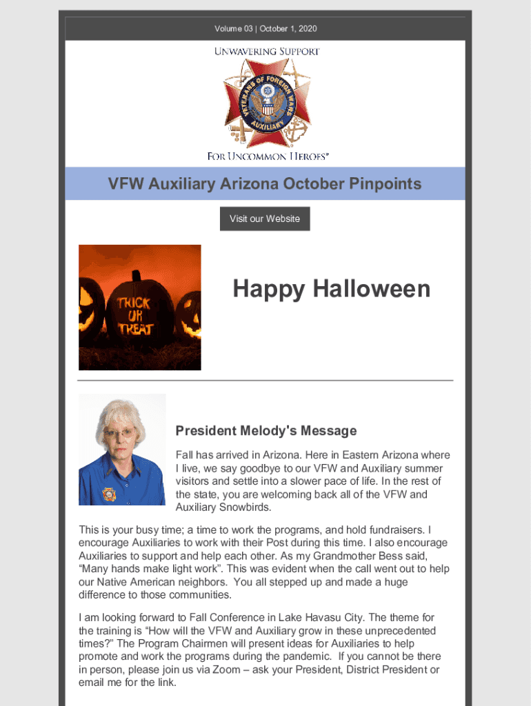 Volume 03 | October 1, 2020VFW Auxiliary Arizona October Pinpoints