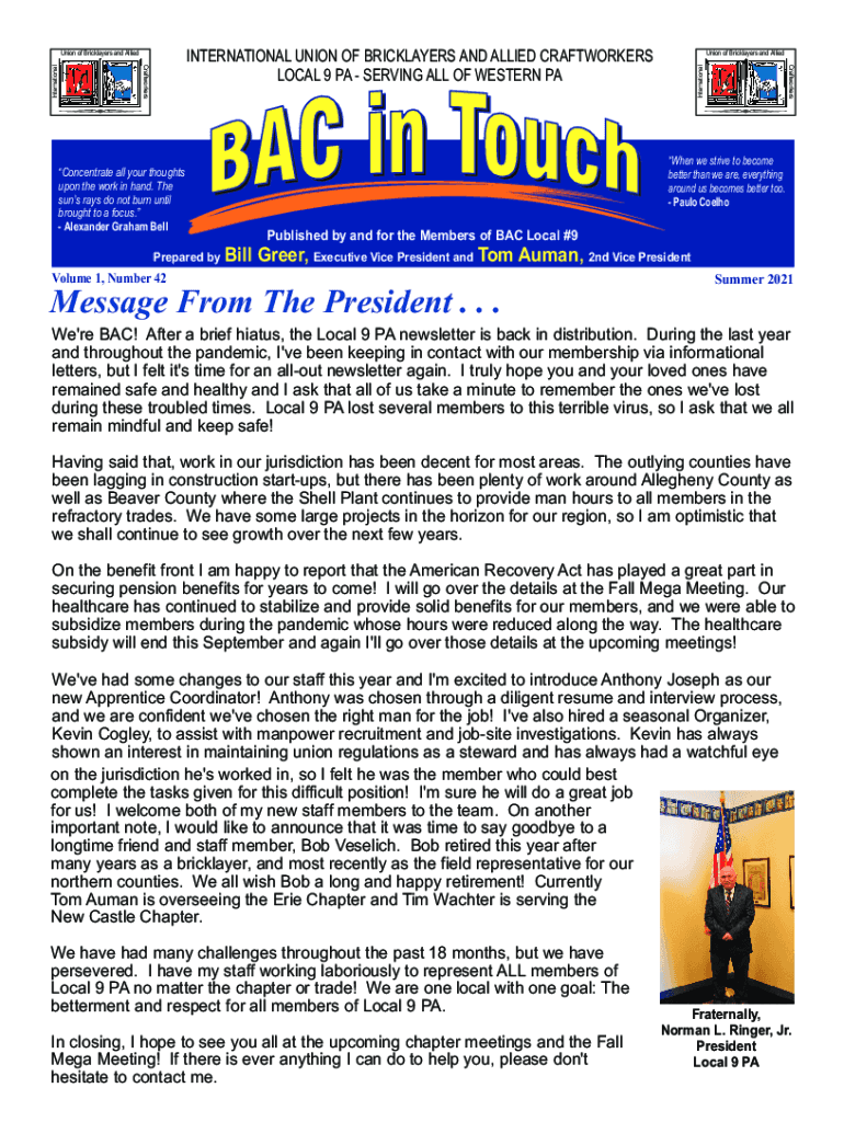 INTERNATIONAL UNION OF BRICKLAYERS AND ALLIED CRAFTWORKERS LOCAL 9 PA SERVING ALL WESTERN Concentrate all your thoughts upon the work in hand. The suns rays do not burn until brought to a focus. Alexander