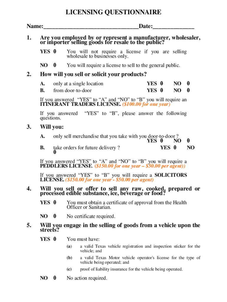 LICENSING QUESTIONNAIRE