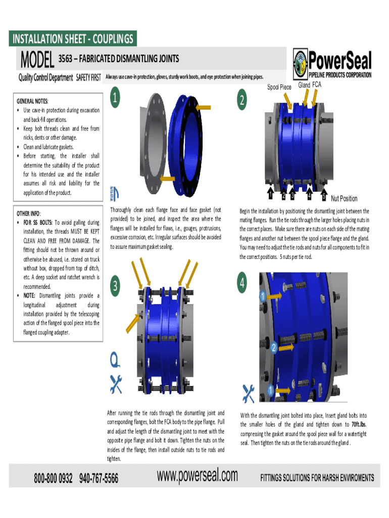 INSTALLATION SHEET COUPLINGS 3563 FABRICATED DISMANTLING JOINTS Always use cavern protection, gloves, sturdy work boots, and eye protection when joining pipes. GENERAL NOTES: Use cavern protection