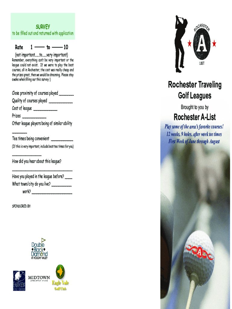 SURVEY to be filled out and returned with applicationRate1to10(not important......to......very important)Remember, everything can't be very important or the league could not exist. If we were to play