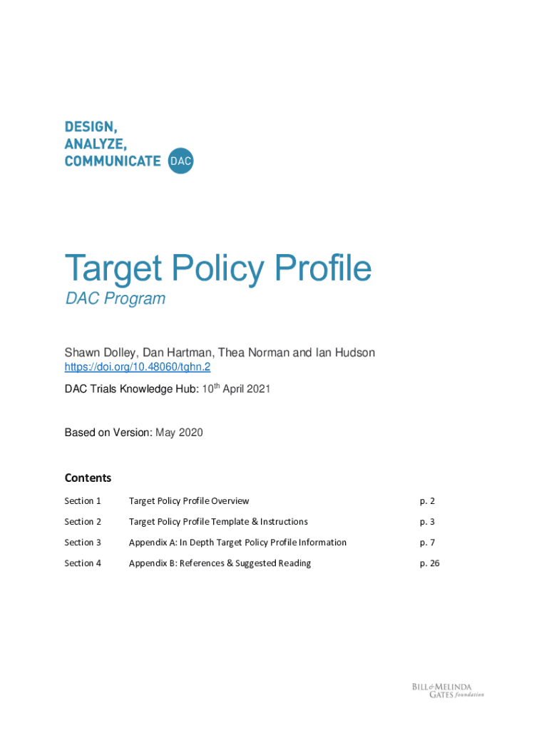 Target Policy Profile DAC Program Shawn Dolley, Dan Hartman, Thea Norman and Ian Hudson https://doi.org/10.48060/tghn.2 DAC Trials Knowledge Hub: 10th April 2021Based on Version: May 2020Contents