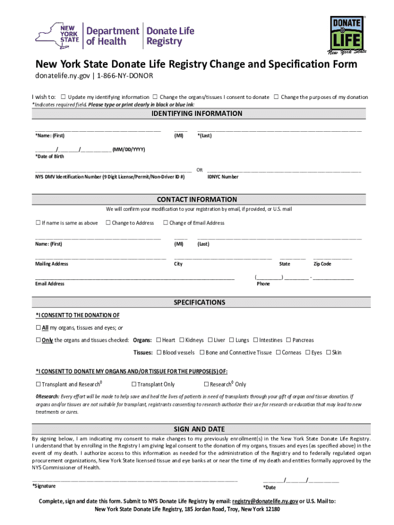 Get the free New York State Donate Life Registry Change and ... - NY.gov