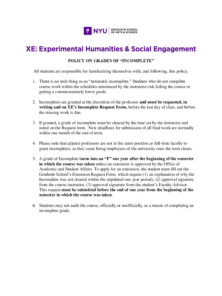 Get the free Incomplete Grade Policy - Office of the Registrar - as nyu