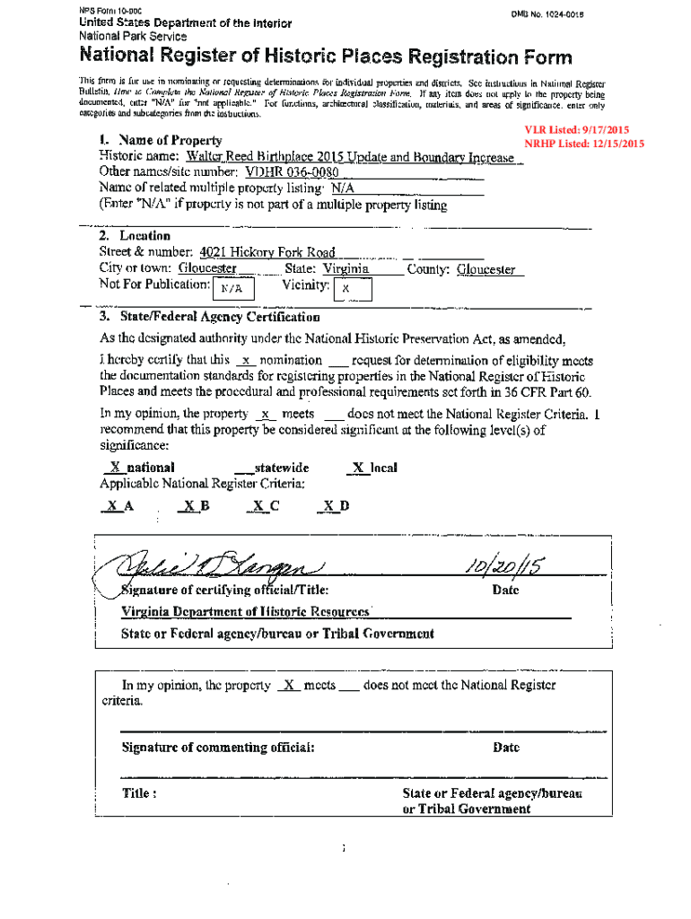 NPS Form 109000 MB No. 10240018United States Department of the Interior National Park ServiceNational Register of Historic Places Registration Form This form is for use in nominating or requesting