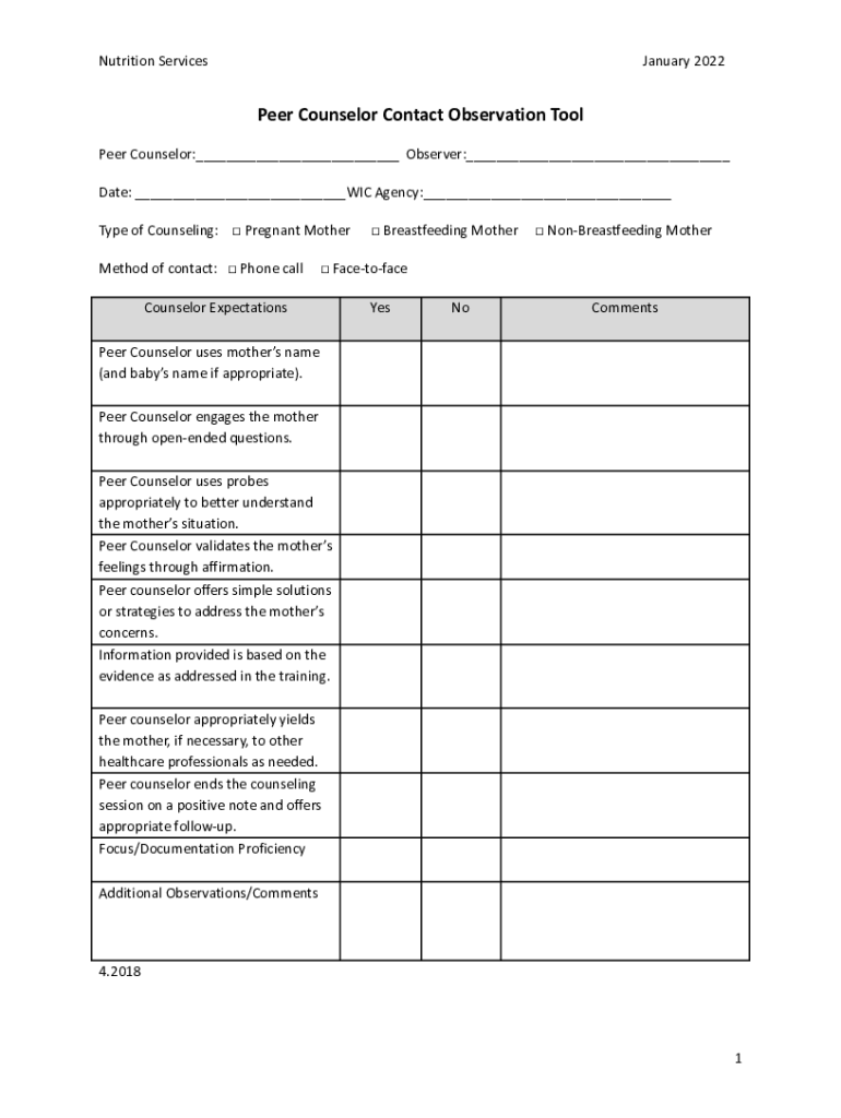 Nutrition Services January 2022Peer Counselor Contact Observation Tool