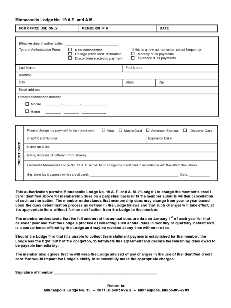 FOR OFFICE USE ONLYMEMBERSHIP #DATEEffective date of authorization: ___
