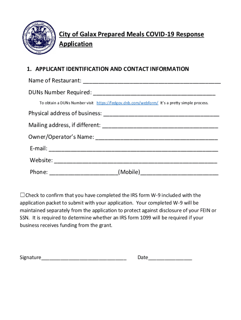 Request for Prepared Meals The City of Galaxy is pleased to announce that it has received a Virginia Department of Housing and Community Development grant for COVID-19 response. The grant will assist